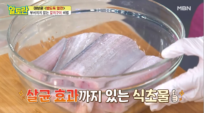 갈치구이를 맛있게 만드는 과정에서 식초물을 사용하는 이유는, 염지한 갈치를 식초물에 헹구면 갈치 살에 더욱 탄력이 생기기 때문입니다.