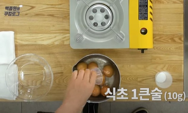 식초와 소금을 넣는 이유는 계란이 깨지는 것을 방지하고, 만약 깨지더라도 흰자가 새어나가지 않도록 도와주기 때문인데요, 또한 나중에 껍질을 더 쉽게 벗길 수 있다고 합니다.