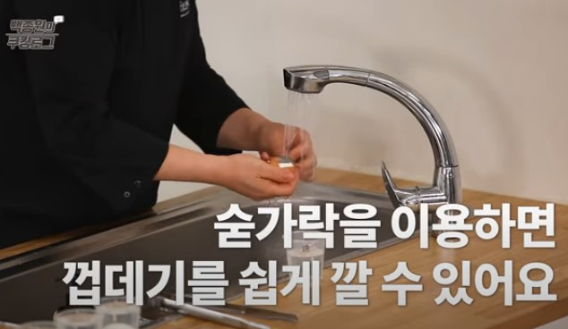 숟가락으로 살짝 두드려서 계란 껍질에 금이 가게 한 후, 작은 조각부터 떼어내고, 숟가락의 뒷부분을 이용해 껍질을 조심스럽게 긁어내면 쉽게 벗길 수 있다고 합니다.