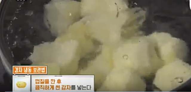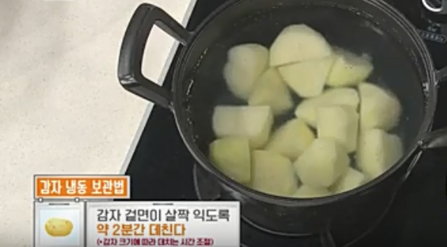 이렇게 감자를 살짝 데치면 감자 속의 수분이 빠져나가 냉동 보관 기간을 늘릴 수 있다고 합니다.