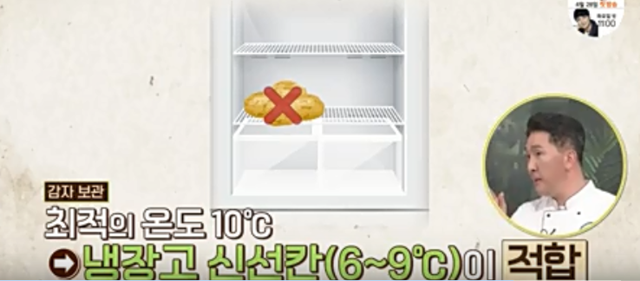 감자를 보관하기에 이상적인 온도는 약 10℃로 알려져 있습니다. 냉장고의 신선 칸은 대개 6~9℃로 유지되므로, 이 온도대에서 감자를 보관하면 적합할 수 있습니다.
