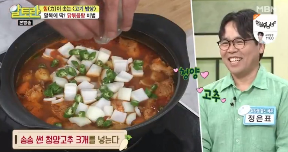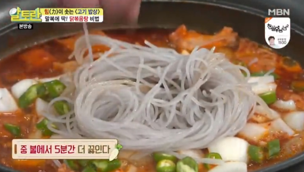물이 끓기 시작하면, 깍둑 썬 양파 1개, 송송 썬 청양고추 3개, 불린 당면 120g을 넣고 불을 중불로 줄여 10분간 더 끓여주세요.