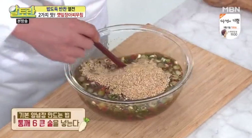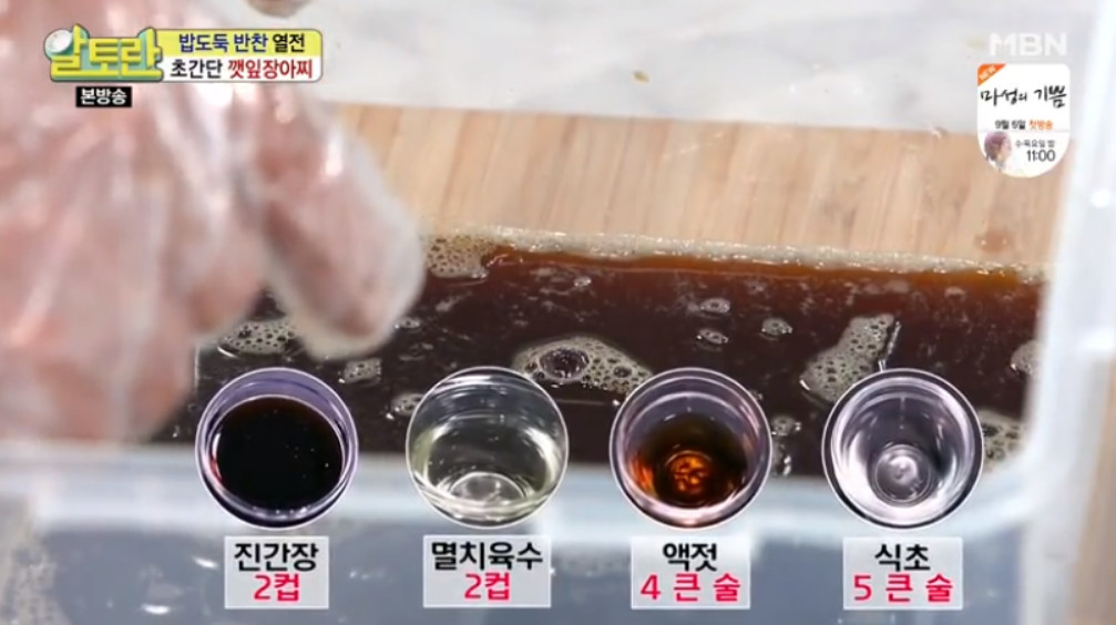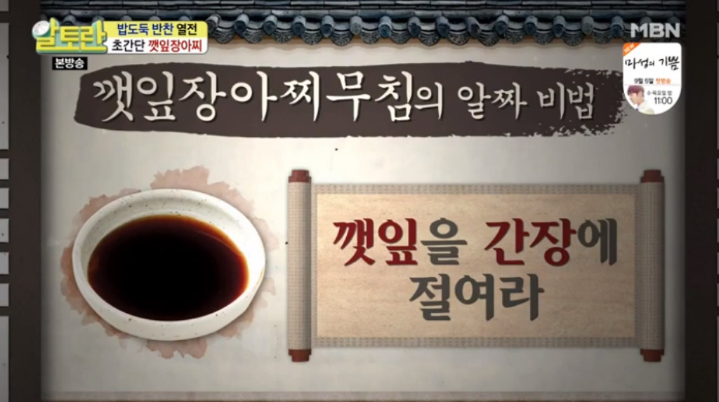 깻잎장아찌 무침의 핵심 비법은 깻잎을 간장에 절이는 것입니다. 만약 깻잎을 소금물에 절이면 최소 10일 이상 절여야 하고, 깻잎이 짜고 질겨진다고 합니다. 반면에 깻잎을 간장에 절이면 1시간만 절여도 된다고 하네요.