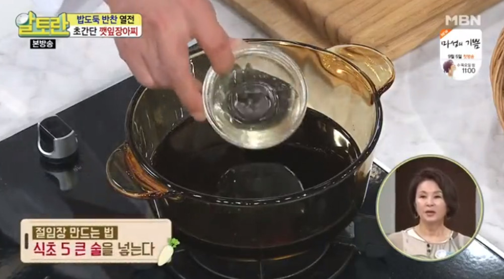 절임장 만드는 방법은 다음과 같습니다. 진간장 2컵, 멸치 육수 2컵, 멸치 액젓 4큰술, 식초 5큰술을 넣고 센 불에서 끓여 주시면 됩니다. 간단하죠? 이때 식초를 넣는 이유는 깻잎의 쓴맛을 제거하기 때문이라고 합니다.