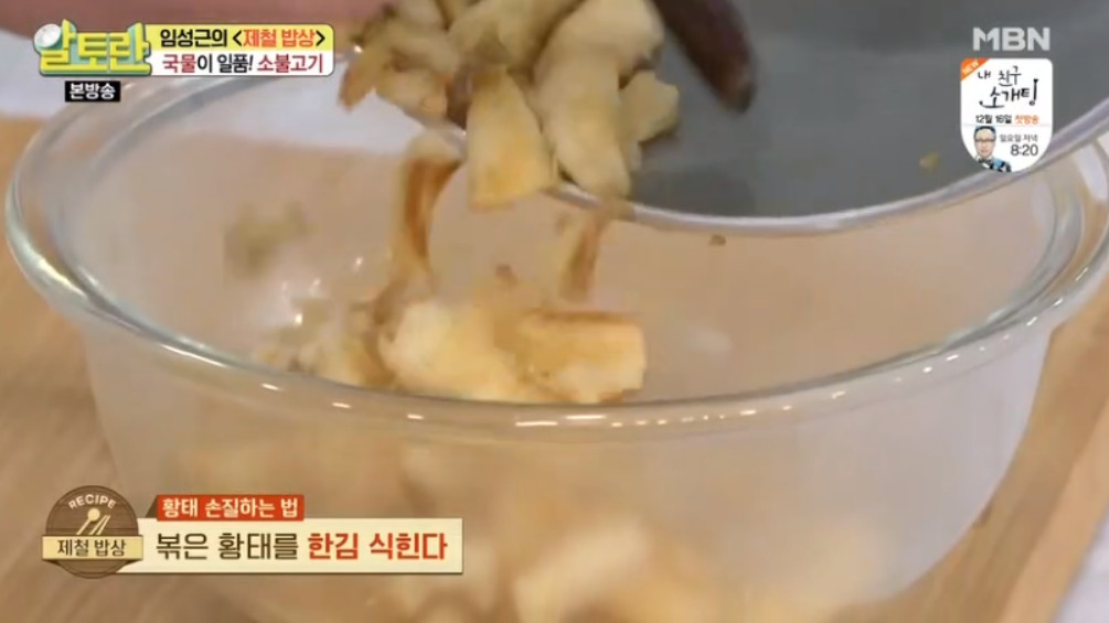 그리고 프라이팬에 황태를 약 3분간 볶아 주세요.