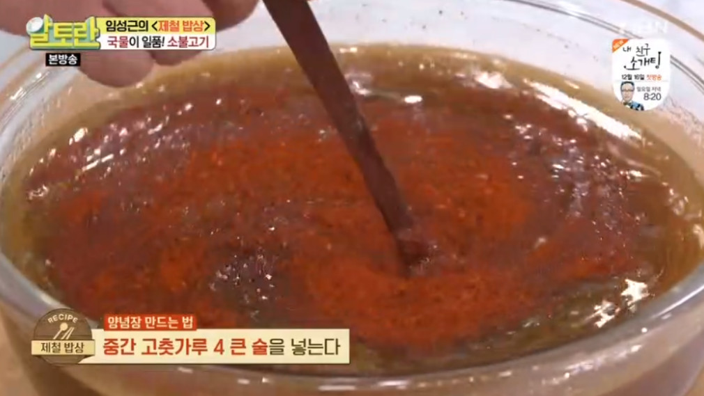 그리고 중간 고춧가루 4큰술도 넣어 주세요. 고춧가루를 넣는 이유는 소불고기의 느끼한 맛을 잡아 주기 때문이라고 합니다.