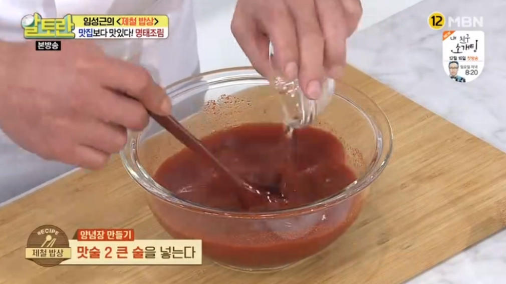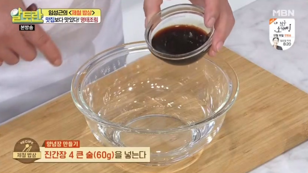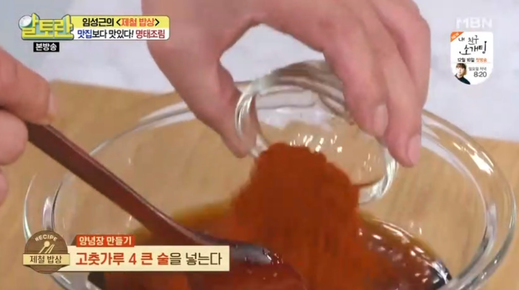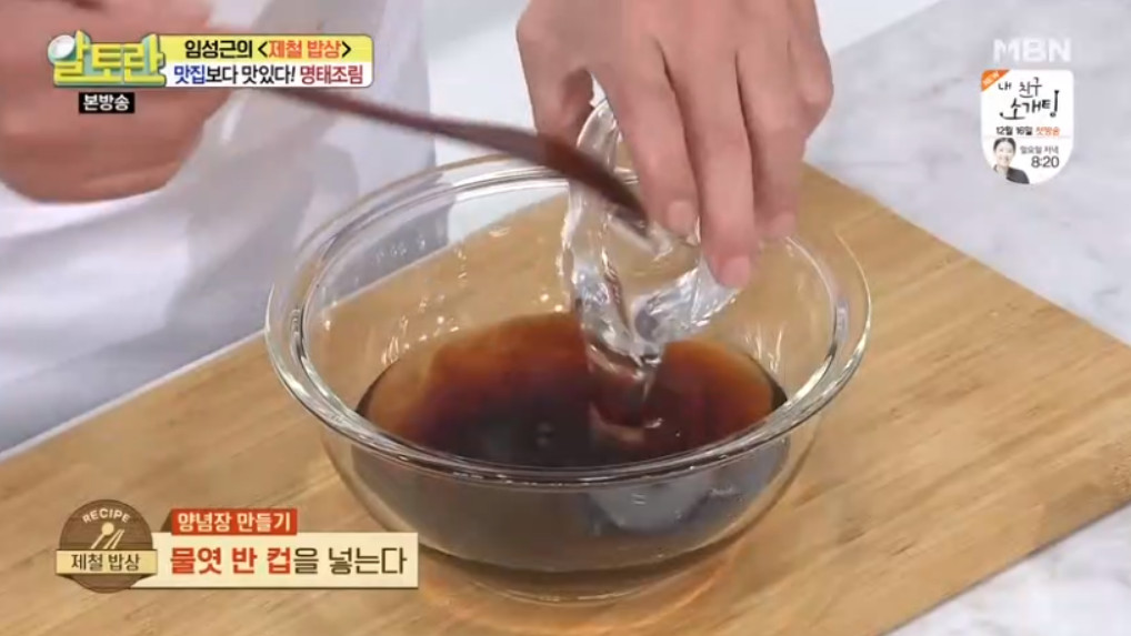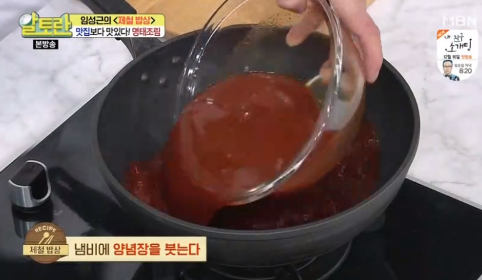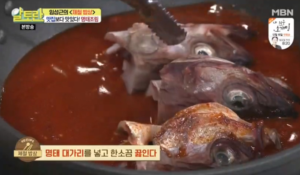 여기서 달인의 비법이 나오는데요, 바로 명태조림 양념장을 명태 대가리와 함께 한 번 끓여 주는 것입니다. 이렇게 하면 맛의 풍미가 훨씬 깊어진다고 합니다. 끓여서 사용하는 것과 끓이지 않고 사용하는 것은 차이가 크니 꼭 양념장을 한 번 끓여 주세요.