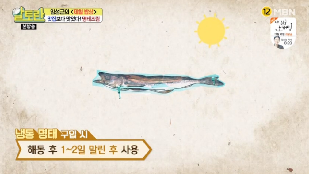 우선 명태 고르는 팁부터 알려드리겠습니다. 명태는 껍질이 흰색을 띠고 냄새가 나지 않는 것을 선택해야 합니다. 그리고 냉동 명태를 구입했다면 해동한 후 하루에서 이틀 정도 말린 후 사용하세요.