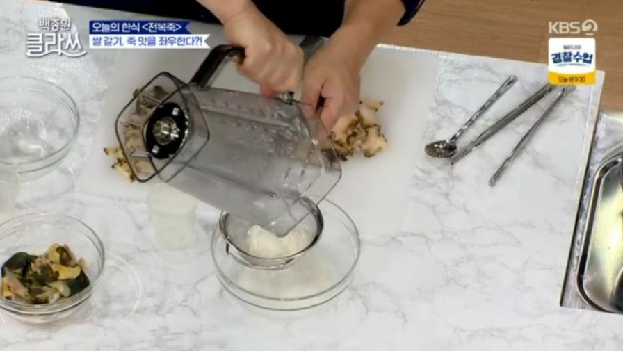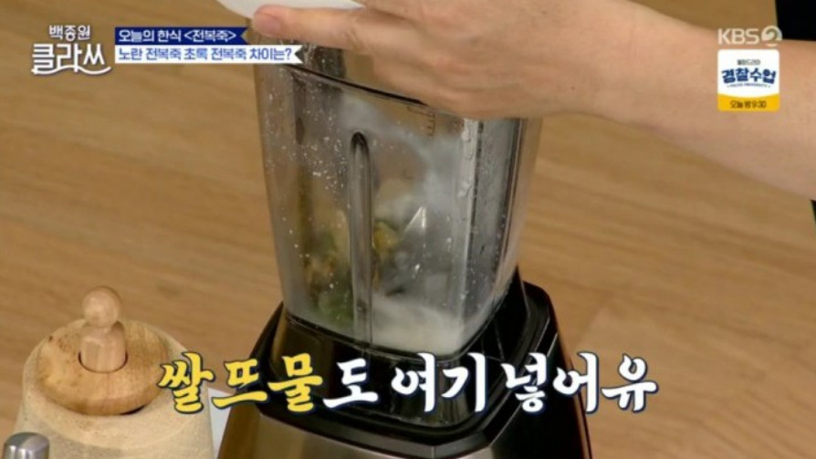 백종원 선생님의 꿀팁입니다. 바로 믹서에 쌀을 한 번 갈아서 전복죽을 끓이면 시간을 단축시킬 수 있다고 해요.