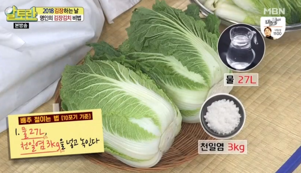 이 과정을 14시간 동안 반복하여 배추를 절이면 완성됩니다.