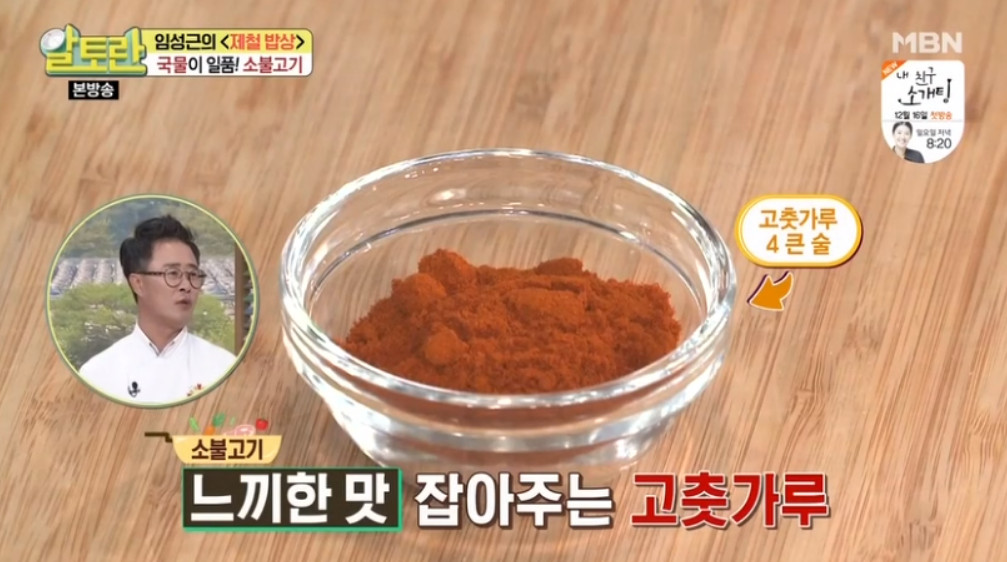 그다음으로 중간 고춧가루 4큰술을 추가해 주세요. 고춧가루를 넣는 이유는 소불고기의 기름진 맛을 줄여주기 때문입니다.
