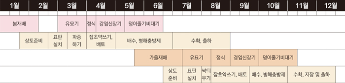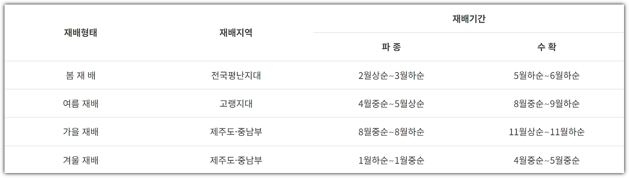 ● 수확 시기: 일반적으로 6월 하순에서 7월 초순