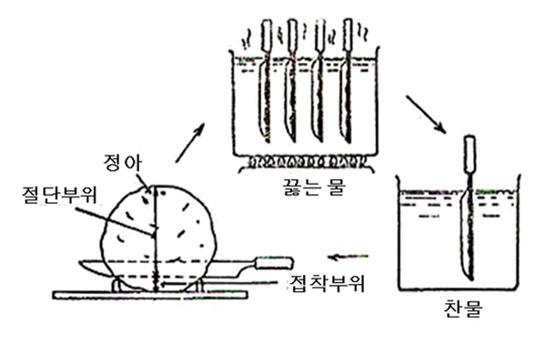 - 소독: 무름병과 바이러스 등 병원균 전파를 막기 위해 사용 전 칼을 끓는 물에 담가 소독하는 것이 좋습니다.