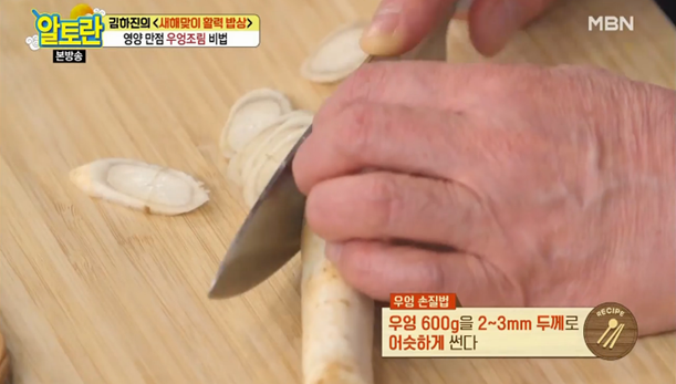 ▶2~3mm 두께로 썬 우엉 600g