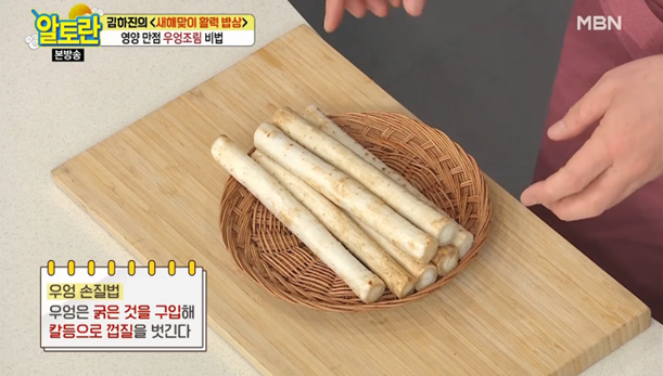 1. 우엉은 두꺼운 것을 선택하여 칼등을 사용해 껍질을 제거하세요.