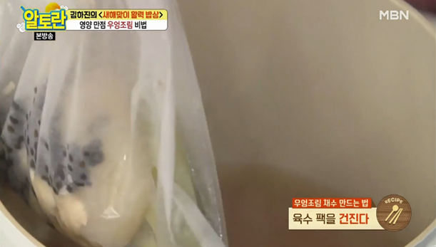 11. 40분이 지나면 육수팩을 제거합니다.