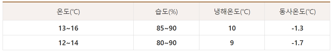 2. 저장 온도: 12~14℃, 저장 습도: 85~90%