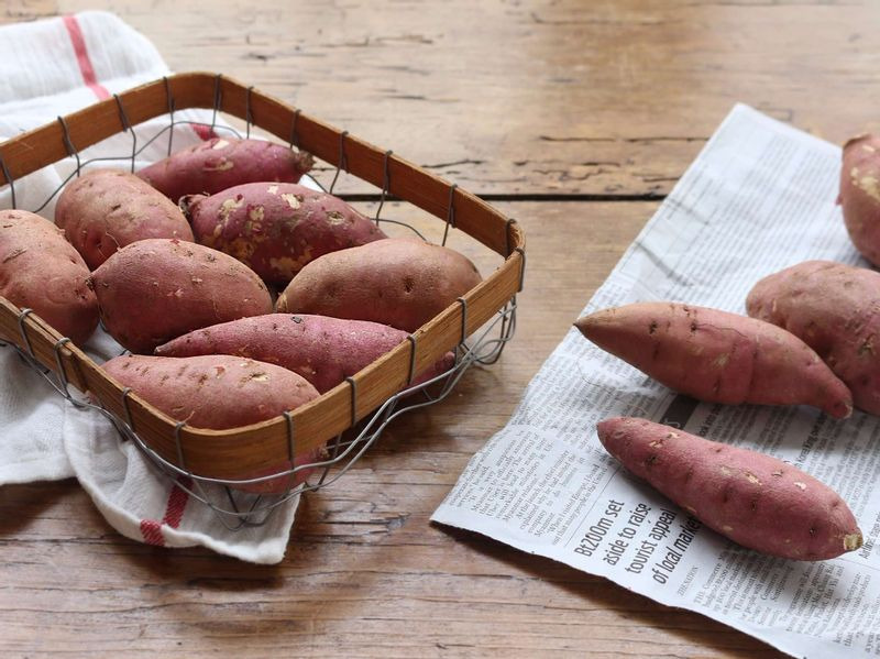3. 고구마는 볕이 들지 않고 공기가 잘 통하는 실내에서 채반이나 박스에 보관합니다. (고구마 보관에 적합한 온도: 13~16℃) 고구마는 저온에 민감하므로 냉장 보관은 피하는 것이 좋습니다. 또한 햇볕이 강한 곳에 두면 싹이 트거나 상할 위험이 있으니 주의해야 합니다.