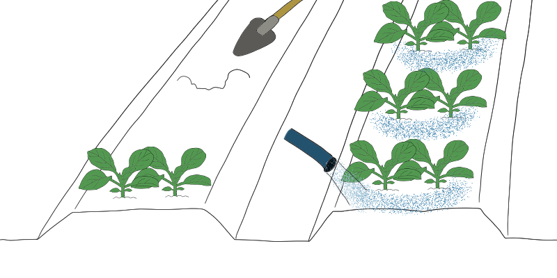 ▶비가 올 때 작업: 비가 내려 토양이 젖어 있을 경우에는 정식 작업을 피하는 것이 바람직하나, 적당한 부슬비가 내리거나 비가 오기 직전에는 정식하는 것이 좋습니다.