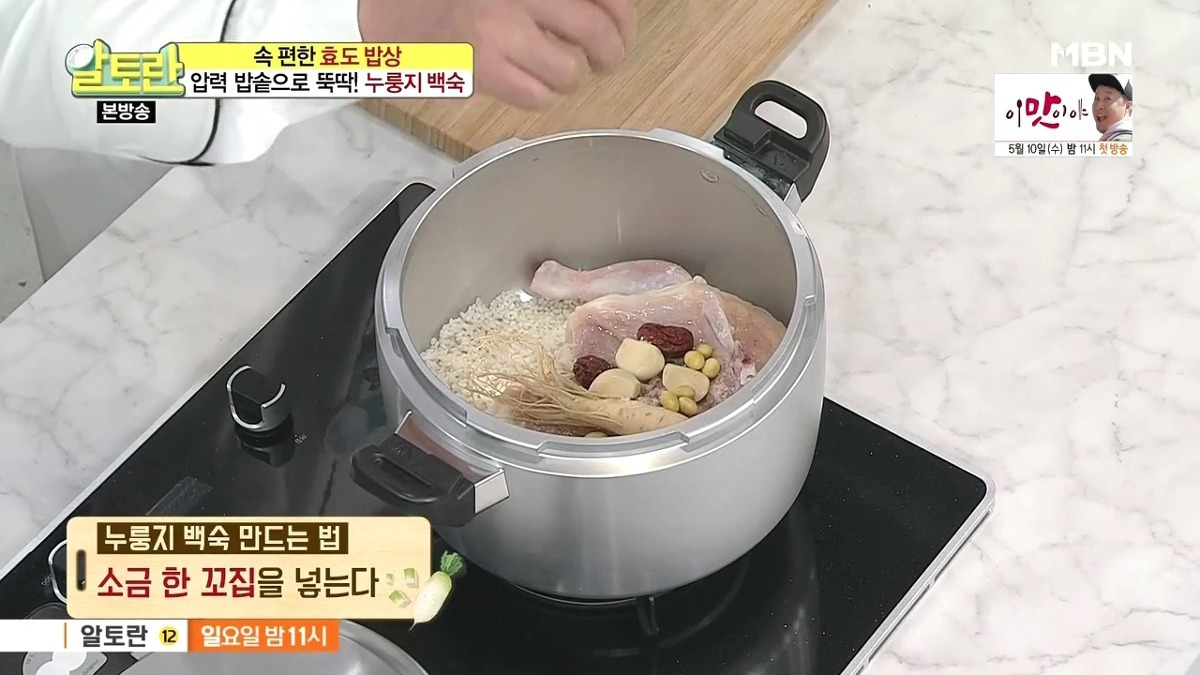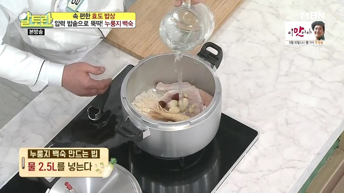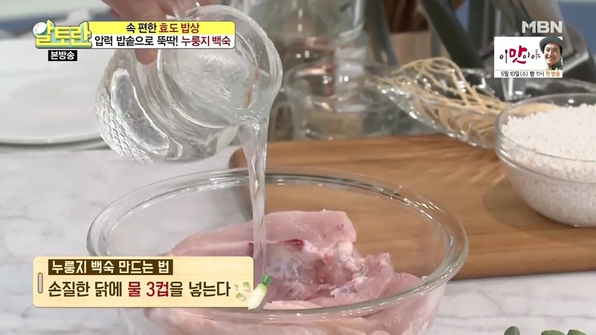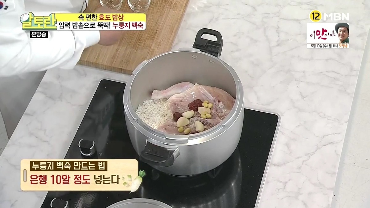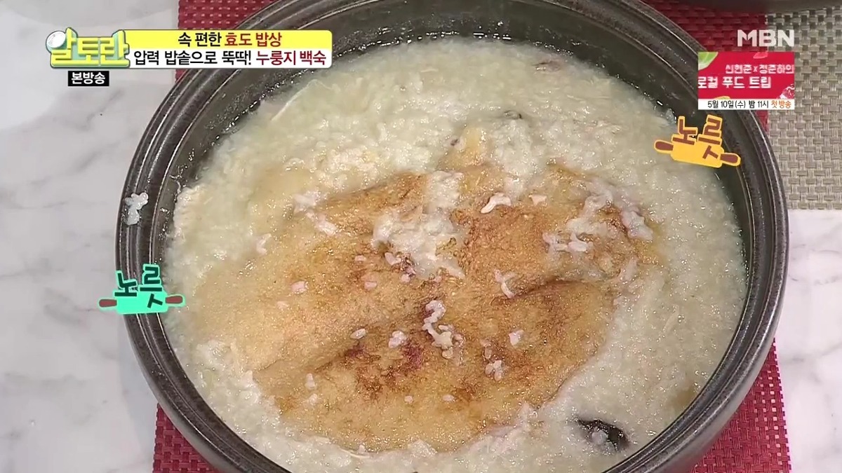 누룽지를 더욱 바삭하게 즐기고 싶다면, 죽을 덜어낸 후 누룽지만 따로 한번 더 익혀도 됩니다. 닭백숙 황금레시피 압력솥으로 만드는 법이 생각보다 간단하죠?