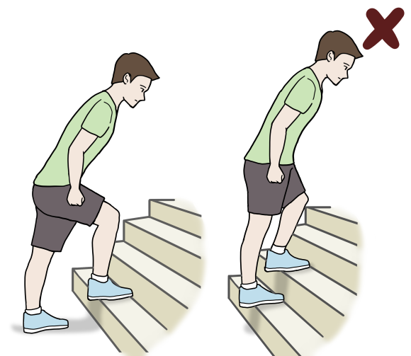 하체 근력을 강화하는 데 효과적인 계단 오르기 운동이지만, 무리하게 진행하면 부상이나 통증 악화를 초래할 수 있으므로 몇 가지 주의사항을 염두에 두어야 합니다.