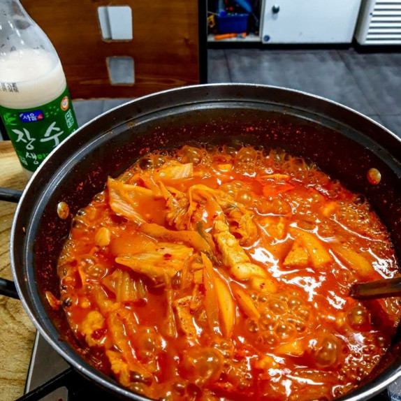 여기서 또 하나 중요한 점은 김치입니다. 김치는 신맛이 날 정도로 잘 익은 묵은지를 사용하는 것이 좋습니다. 갓 담근 김치로 끓이면 양배추 수프 같은 맛이 날 수 있으니, 꼭 묵은지를 준비해주세요.