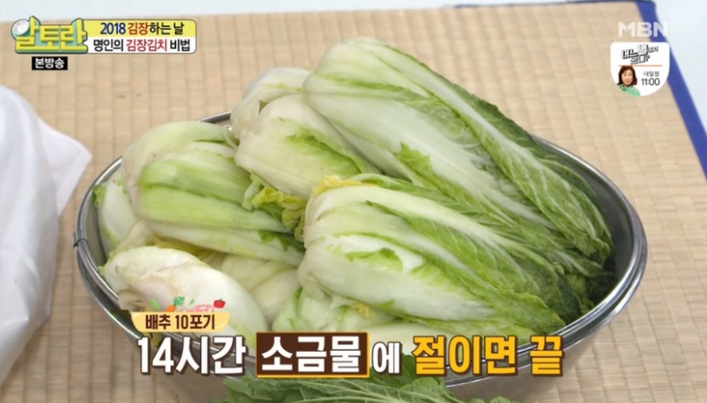 이 과정을 14시간 동안 반복하여 배추를 절이면 완성됩니다.