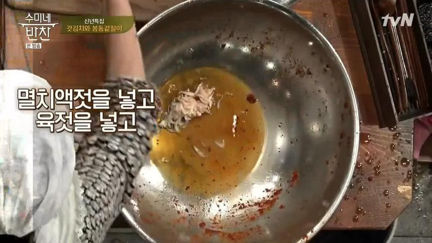 1. 봄동 겉절이의 황금 레시피를 소개합니다. 먼저, 멸치 액젓 3큰술, 육젓 1큰술, 다진 마늘 1큰술, 다진 생강 반 큰술, 고춧가루 6큰술을 준비합니다. 그 다음에는 봄동 겉절이 양념의 간을 보며 조절해 주세요. 참고로, 찹쌀풀은 사용하지 않으며, 양념이 너무 되직해지면 김장 때 만든 육수를 추가하면 됩니다.