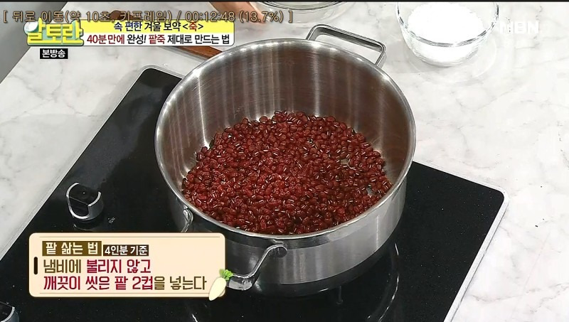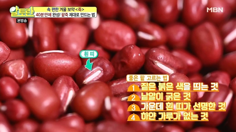 1. 먼저 좋은 팥을 고르는 방법입니다. 팥은 진한 붉은색을 띠고 가운데 흰 띠가 뚜렷한 것을 선택해야 합니다. 일반적으로 동지 팥죽은 반나절 동안 불리고 몇 시간 동안 삶은 후 다시 분리하여 끓이는 번거로운 과정이 있어 쉽게 만들기 어려운데요, 25분 만에 부드럽게 으깨지도록 만드는 팁이 있습니다. 그 비법은 바로 "소금"을 사용하는 것입니다. 소금을 넣으면 삼투압 현상이 발생해 더 부드럽고 빠른 시간 안에 삶을 수 있다고 합니다.
