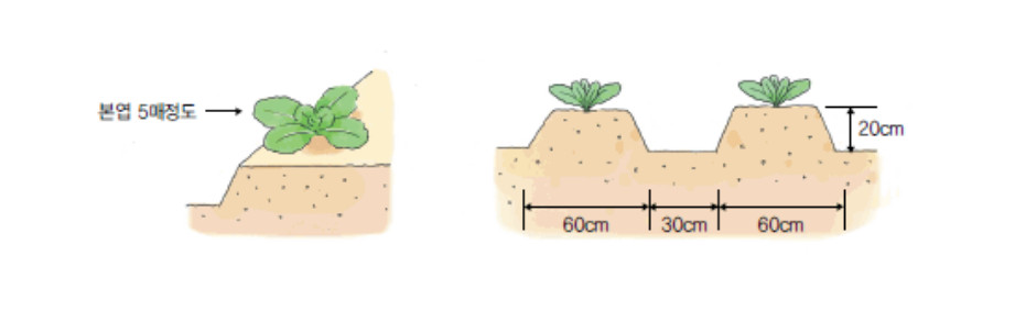 ▶모종 심기 조건: 김장배추의 모종을 심는 시기는 고온기에 해당하므로 흐린 날 오후에 심는 것이 모의 뿌리 내림에 유리합니다.